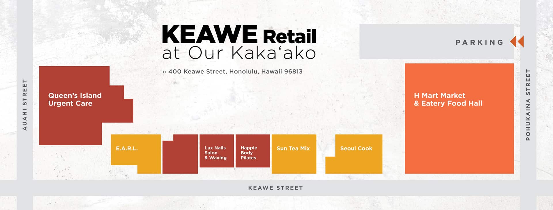 Keawe Retail offers a wide variety of mouthwatering dining options, the island’s most extensive Asian grocery store, an excellent urgent care center, full-service nail salon, top-ranked real estate office and more! Enjoy a comfortable walk down Keawe Street’s 400 block to find our delightful mix of merchants. They’re ready to serve you soon!